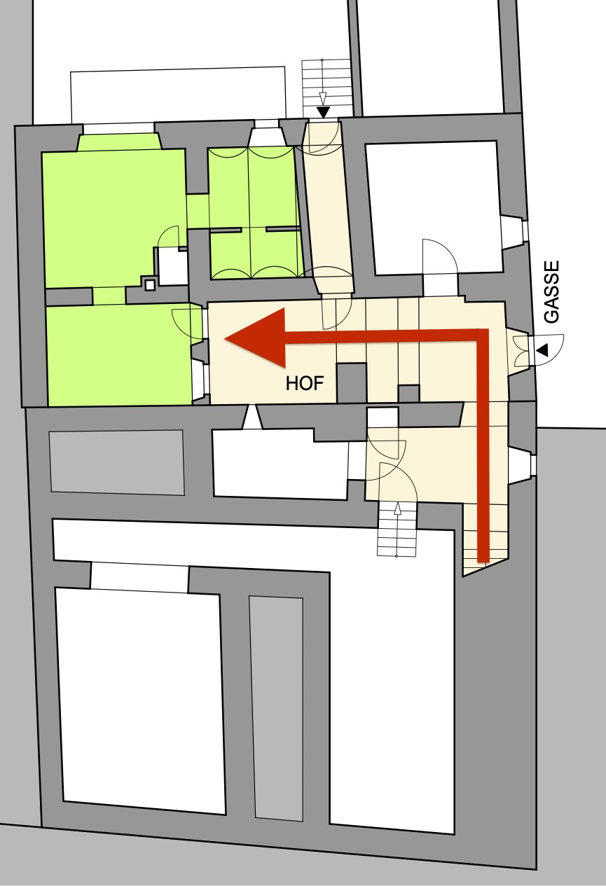 Vor allem beim Transport des Gepäcks ist der Zugang über die Hopfengasse eine große Erleichterung. Der Gebrauch des Durchsteckschlüssels wird mit der Check-in eMail erläutert.